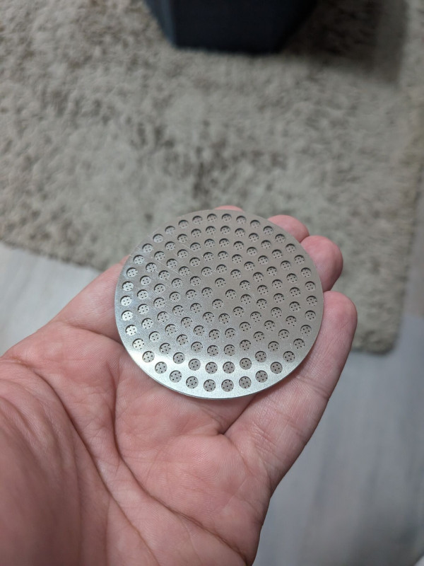 Van vékony (0.2 mm), aminek 58.5 mm az átmérője, tehát jobban passzol a kosaramba, mint a vastag (0.8 mm), ami csak 58.0-ás. Viszont az előbbi olyan lehelletvékony, hogy néha félek megfogni, eltörölni. Ezzel szemben a vastagabb (ugyanolyan, mint amit tDr1v3r kolléga mutatott párral lentebb) szép, masszív darab. Másrészt nekem a használt kávémennyiséghez ez a vastagság jön ki jól a headspace tekintetében. Ha a vékonyat használnám, akkor 1 grammal több kávét kellene töltenem, különben mocsarasodni fog a pogácsa.Szoktam csinálni egy előmelegítő csapolást a portafilterrel, kosárral az "igazi" főzés előtt. Na ebbe beleteszem a puck-screen-t, ami így szépen előmelegszik. Ha valamiért úgy jön ki a fejtávolság, hogy szükség lenne a vékonyra, akkor itt van tartalékban, de ha most vennék, most is a vastagabbat választanám, mert nem olyan kényes.