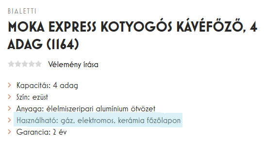 Tehát a weboldal és a használati is ugyanazt írja, ugyanis az elektromos nem egyenlő az indukcióssal. Az indukciós külön kategória.