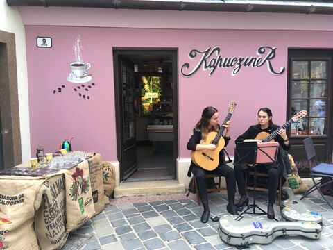 Tegnap voltam a Kapucziner előtt egy kellemes gitárkoncerten. Közben Frenchpressel 3 különböző mexikói kávét kóstoltunk.