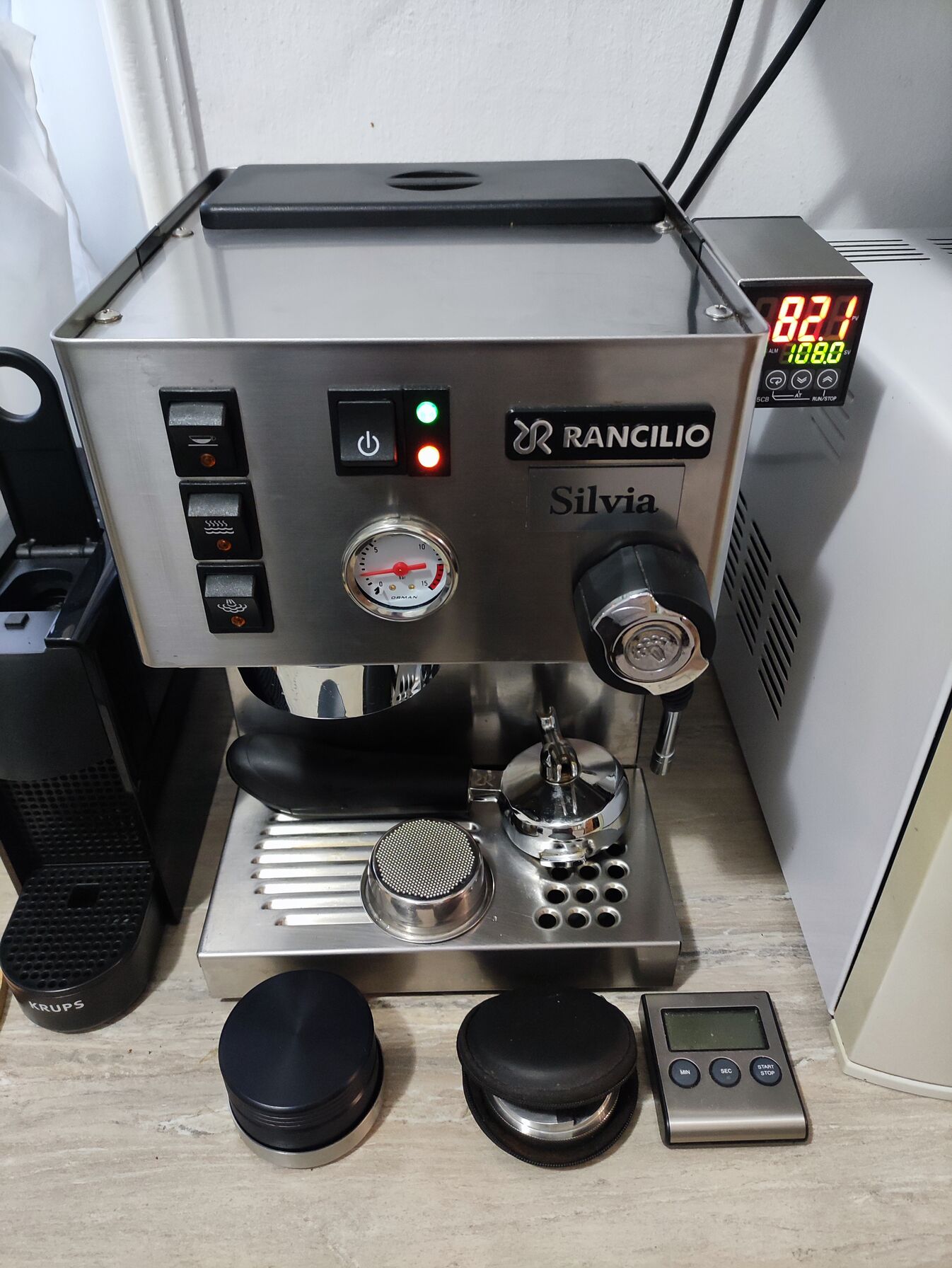 Jokertől egy hajszállal finomabb, 25-30 mp előáztatás, 6,5 barra lassan fel, majd le 4-ig 50 mp alatt.
