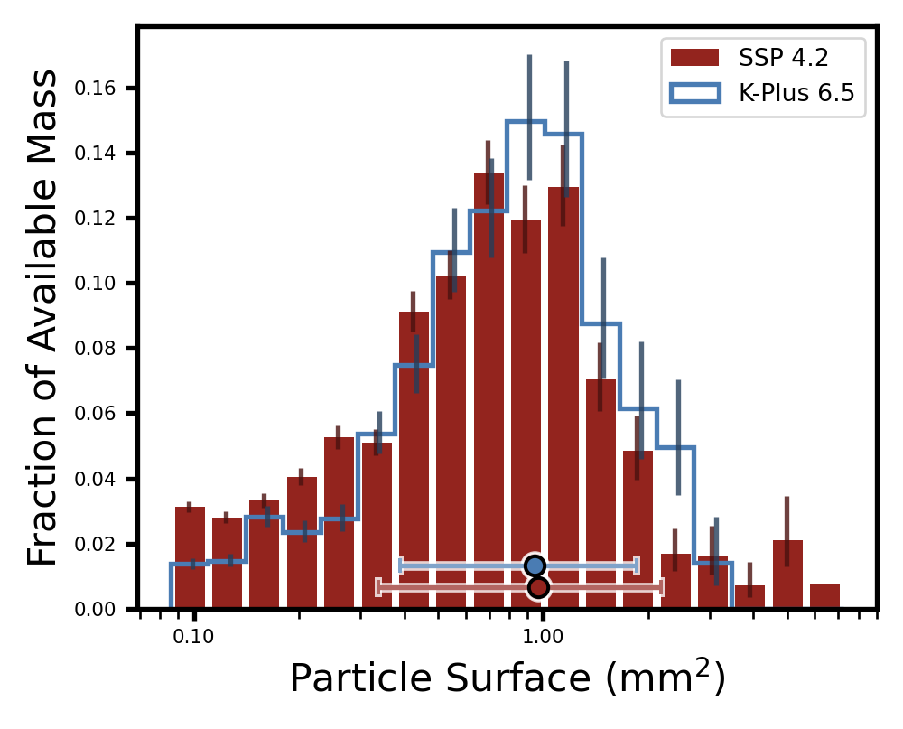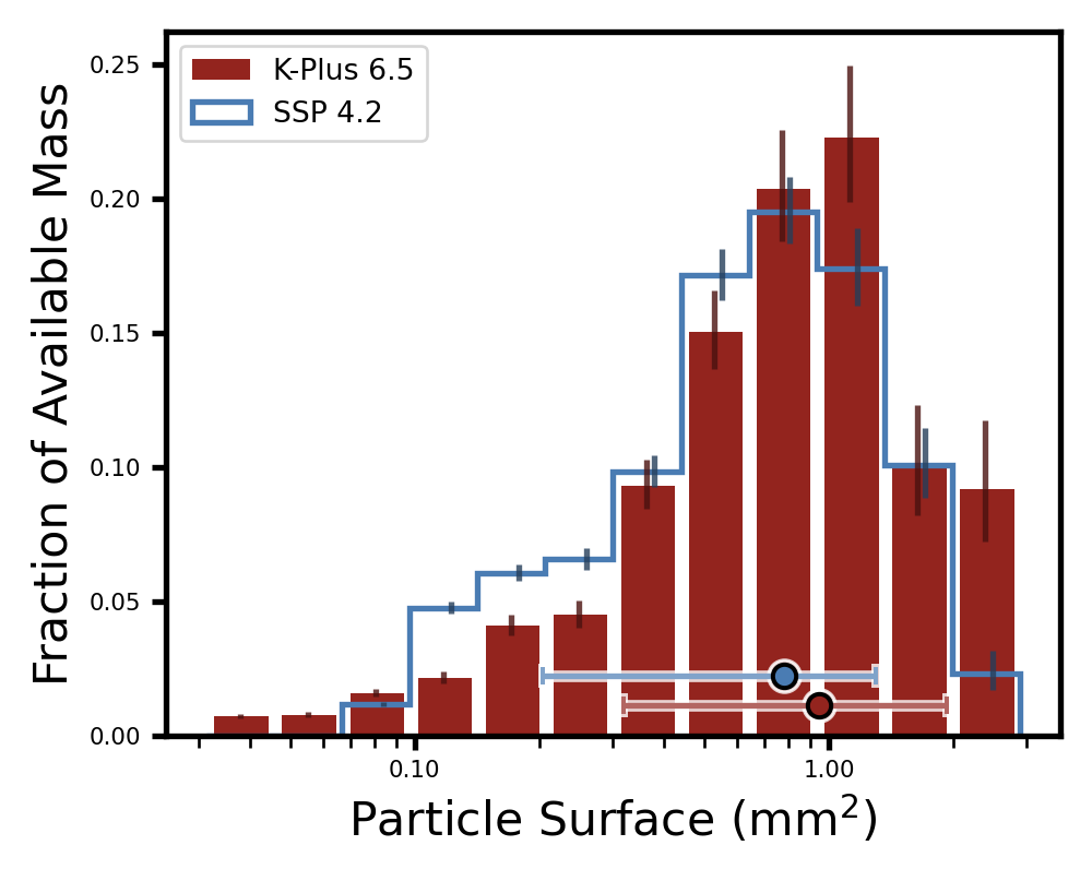 Amúgy azt gondolom, hogy az a kiugró oszlop a nagy szemcsék között mérése hiba lehet, lehet nem töröltél pár clustert amit kellett volna. Legalábbis furcsállanám ha az amúgy alacsony számú nagy szemcseméretben ami szép lineárisan csökken lenne pont egy szemcseméret (tartomány) amiből hirtelen sok lesz