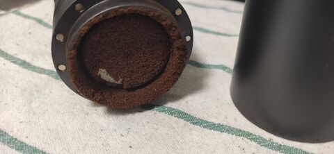 Talán úgy érzem, hogy egy kicsikét sok ebbe a kosárba a 18g, mivel mikor tamperelnék, szinte egyből érzem, hogy nem nagyon enged a pogácsa..