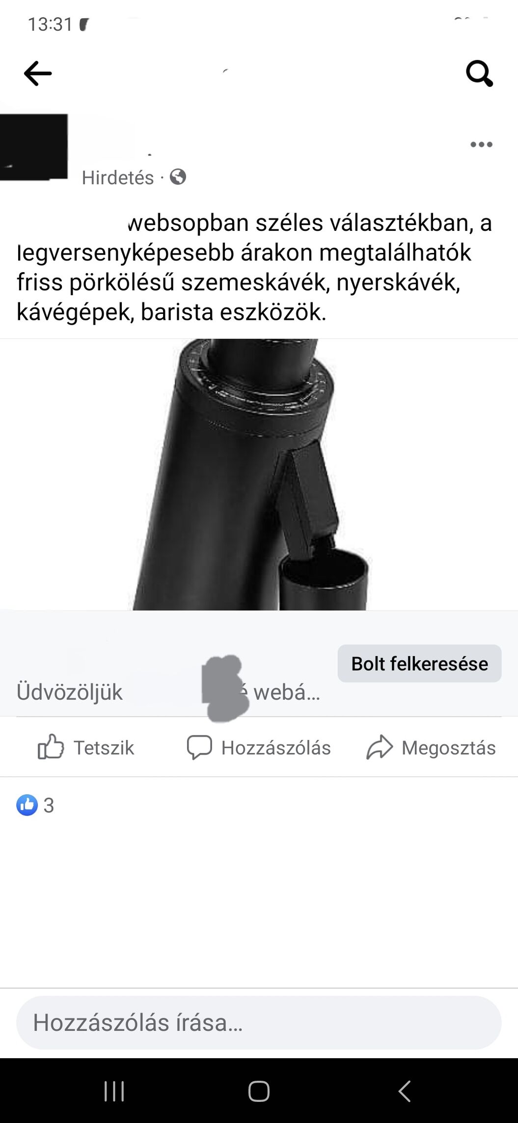 Amikor a hirdetés nekem megjelent, akkor nem volt. Az itteni beírás után kb egy órával felkerült a shopba, ezzel megszüntette a megtévesztő kereskedelmi tevékenységet. A fb csoportba a hsz-em képernyőmentését is felrakta, majd törölte, as usual...