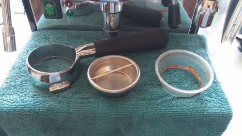 A szokásos 16g helyett 14 grammal töltöttem meg,picit erősebb tamperálás,de sajnos túl gyors lett a lefolyás.