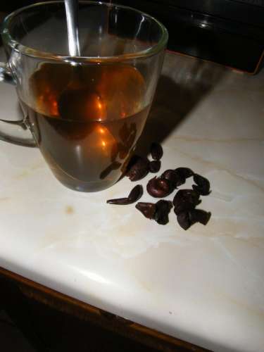 5 gramm, a víz 95 fokos volt a stratkor, 5 percig áztattam. Azt írják, hogy többször is lehet belőle teát készíteni, csak tovább kell majd áztatni. Ízében én legerősebben a fügét érzem, meg egy kis csipkebogyót áfonyával.