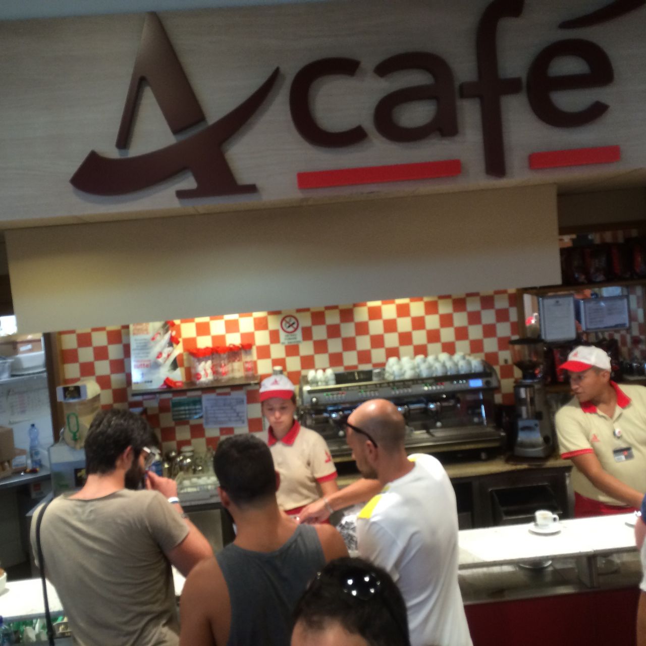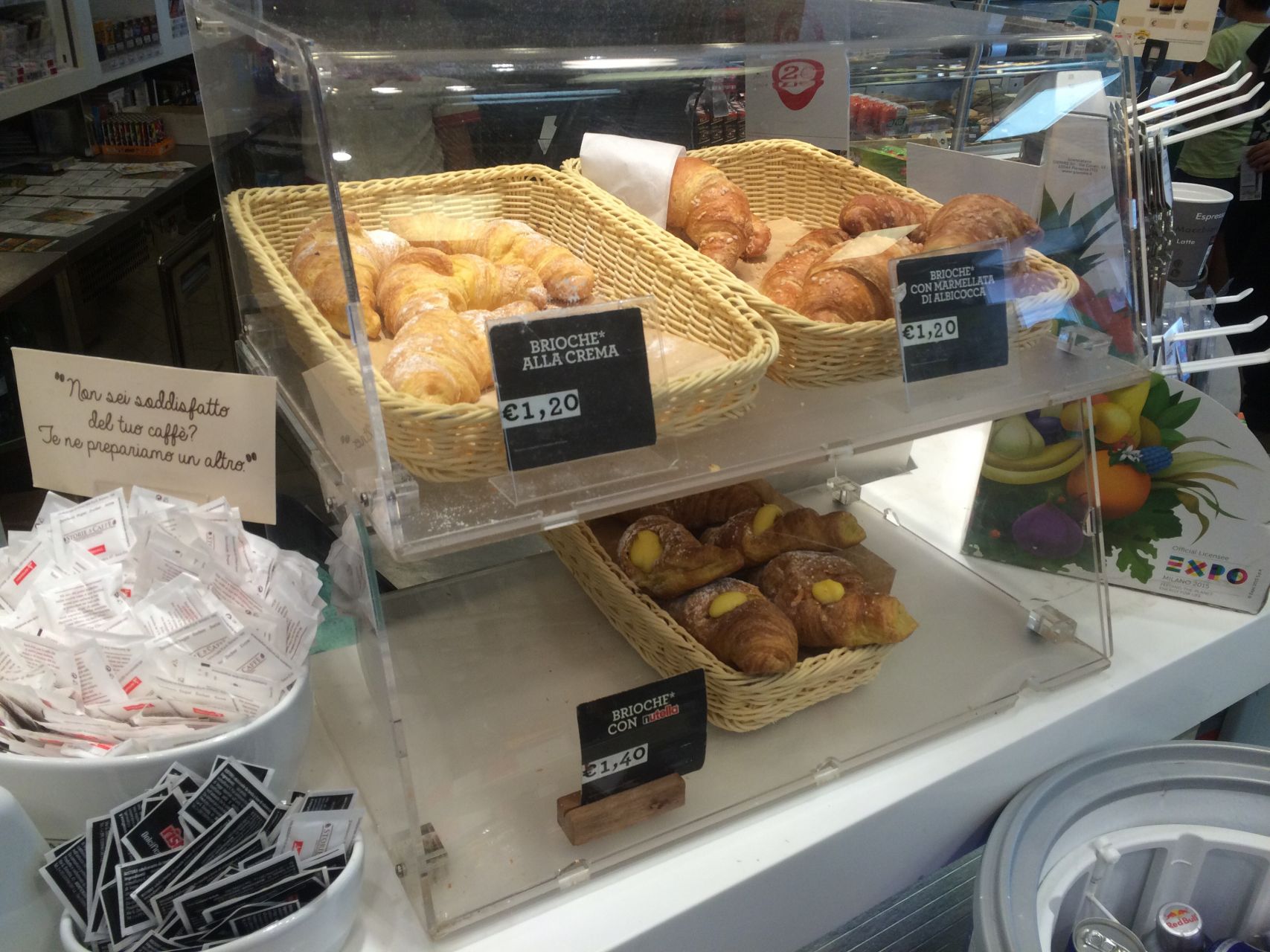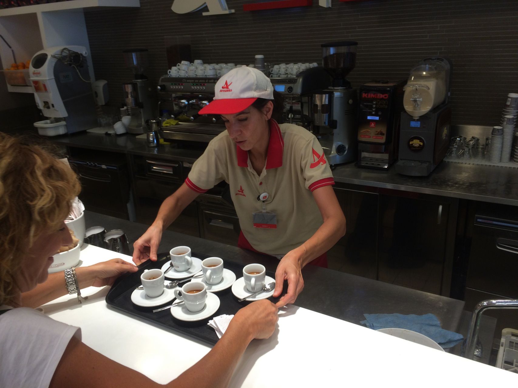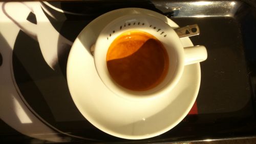 Útközben Szlovéniában egy Marchéban ihatatlan dupla (valami koperi cégtől), óriás croissant, de első osztályú narancslé:Bologna előtt, a szokásos Autogrill, tökéletes alap espresso-k mindenütt, a hosszúra sikeredett (duplából készült) ristretto-t cserélni akarták - nem engedtem. Elfogadható croissant (ők briósnak hívják