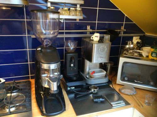 Ami a fordulatszám változtatást, mint új lehetőséget illeti, azért került a készülékbe, mert egyrészt a dc motornál ez adja magát, nem jelent különösebb bonyodalmat a szerkezetben, másrészt az őspéldány nagyon lassú fordulata néha elég zűrös eredményt adott a presszós vonalon. (Lagoonnál a Mazzer Robur késsel nem tudtunk egy tisztességes lefolyást produkálni.) Mindenesetre kiderült, tényleg meglepően nagy eltéréseket ad, ha változtatjuk a fordulatszámot. Kis fordulaton jóval durvábbra kell állítani a darálót, hogy ugyanazt az eredményt kapjuk a kávégépen. Ez tehát egy objektív különbség, de ízben is megjelenik. Egyenlőre úgy tűnik, a kis fordulat a filterezésnél előnyös, a nagyobb (200 fordulat / percig) pedig az espressónál. -