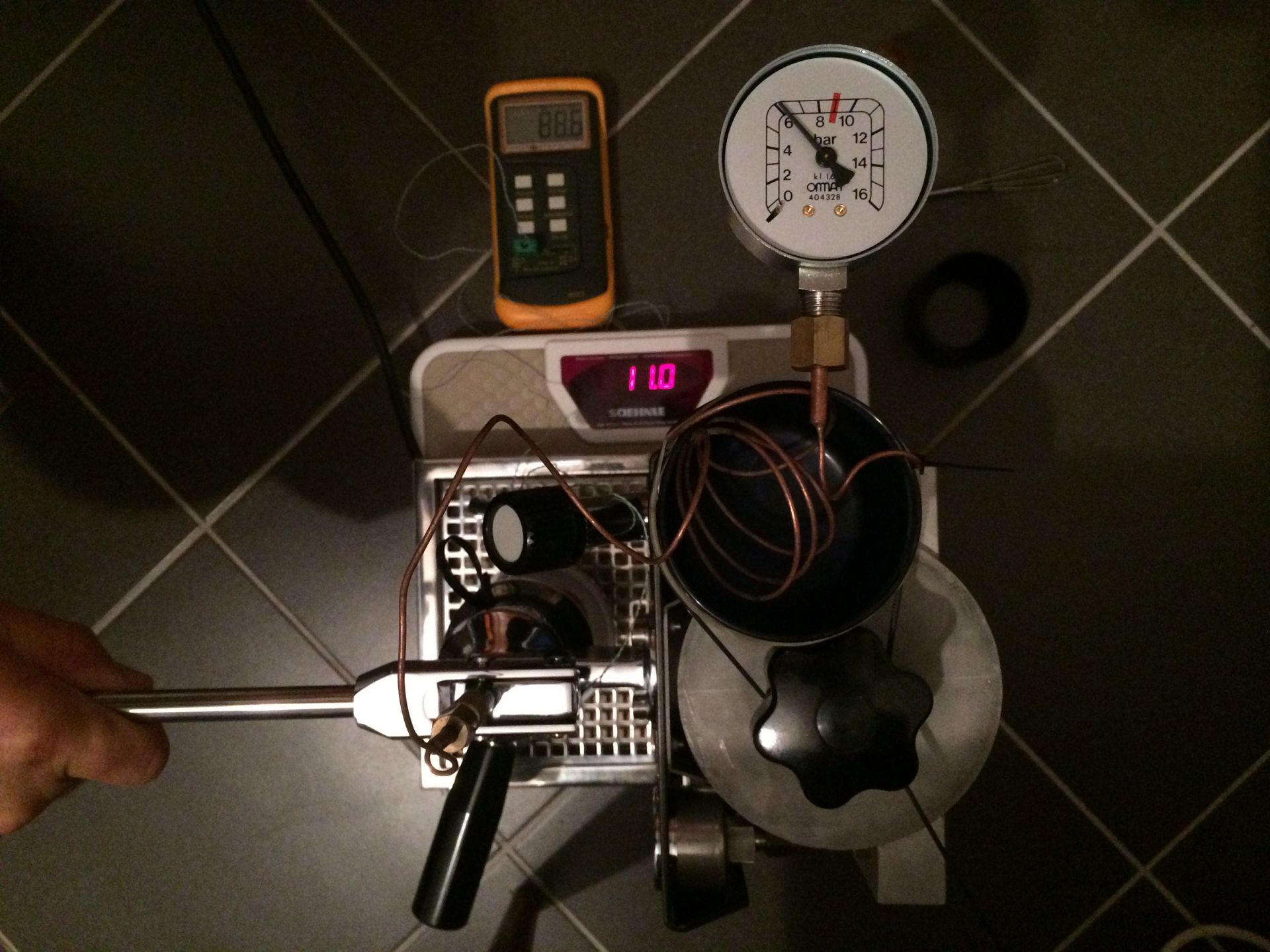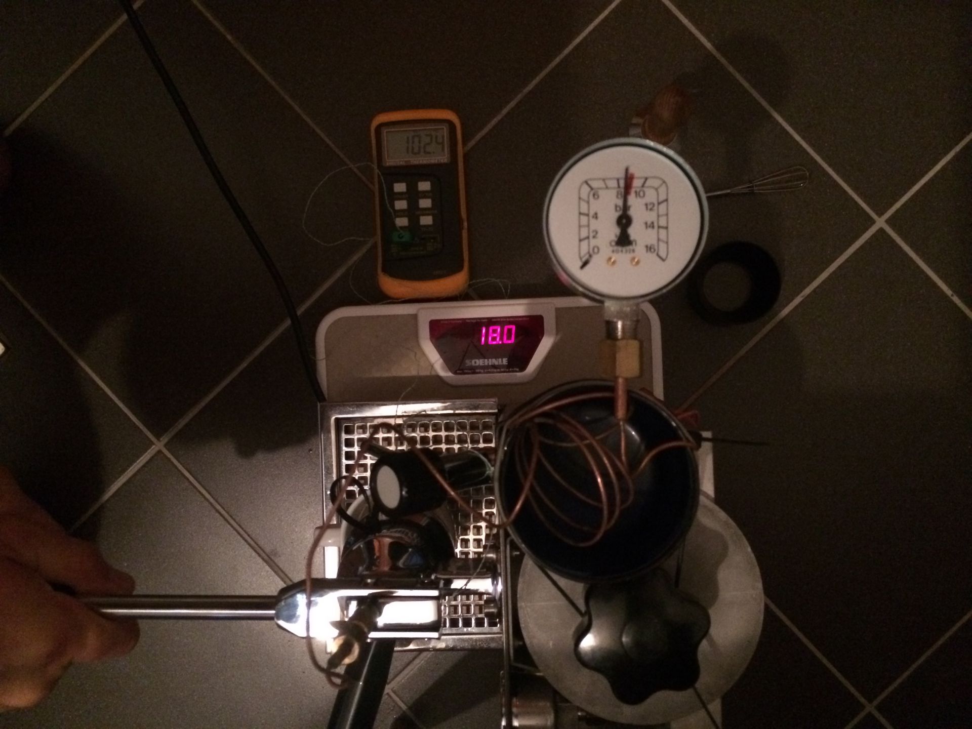reggel a tegnapi beállításokkal, kávéval indítottam a QM-et maxigázon... (ez tegnap szép csöpögős megindulással játszott s pont tökéletes végeredményt adott) de ma az eredmény elkeserítő volt s mivel siettem és nem volt idő darálóval 'utánamenni' így a potméteren visszavettem jól és a második kávé már szépen indult meg és a pogi beázása után nem indult meg kellőképp... ezt láttam is egyből és mentem felfele a nyomással... gyönyörűen működött a dolog