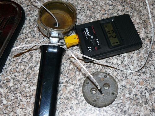 12 perc után újra 82˘C a fej.A fej hőmérsékletét a vízterítőben mértem, ahogy a képen.