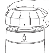 A babtartályt úgy tudjuk levenni,hogy a darálót a legdurvább (25-ös) fokozatra állítjuk, benyomjuk a gép hátulján lévő gombot és az óramutató járásával ellenkező irányba tovább tekerjük magát az állító gyűrűt a 25ösön túl egészen koppanásig.