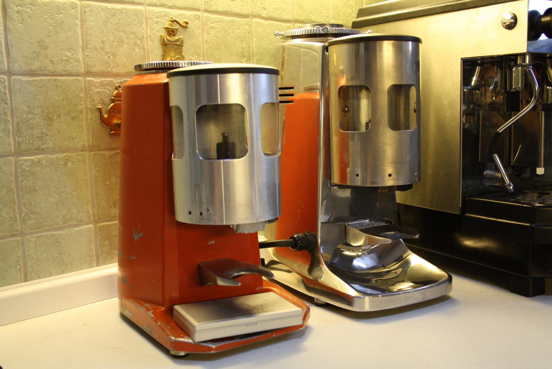 Nos, idáig bírtam. Igazából hamarabb el akartam kezdeni A megmérettetést, de elfogyott a vizem, úgyhogy leugrottam gyorsan a Sparba egy kis Old Boy-ért. Mazzer Major vs Ascaso i-Mini 2 Etióp Djimmah kávéval. Beállítottam mind a két gépet tapintásra és lefolyásra egyező szemcseméretre, majd tizedgrammra pontosan mért kijövő őrleménnyel operáltam. Grammra azonos hűtőcsapolás után húztam a kávékat. A kijövő őrleményen látszódott mennyivel szebb a Majoré, nem is kellett volna neki fogpiszkálás, de azért megnéztem, hogy maradt-e valami a foga között. A tamperelés erősségét nem mértem, de az én fejemben úgy él a dolog, hogy azt elég pontosan meg tudom ismételni, messze földön híres becslőképesség miatt én szoktam megmondani éppen milyen nehéz a disznó. Szóval nem is szaporítanám a szót, szerencsére nem az lett az eredmény, amire vártam. Két duplát húztam mindkét őrlő őrleményével és ízre közel azonos lett minden húzás. Igyekeztem 1-1 deci vízzel öblögetni kóstolások előtt sőt, még a csészét sem változtattam, végig ACF-fel dolgoztam. Most éppen szarul vagyok, lehet elég lett volna 1-1 duplával próbálkozni. Ez nyilván nem hivatalos, még legalább 96 kávét kell húznom, de támpontnak jó lehet.