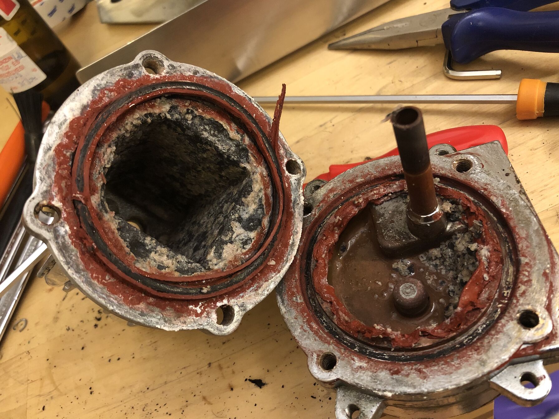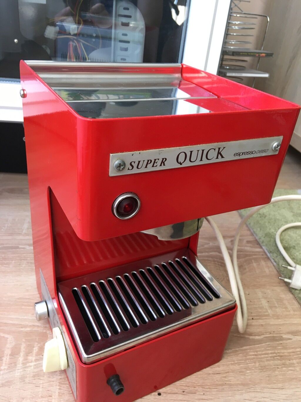 Működésképtelenként hirdette az olasz ember, pedig mindene működik. Jó, a fej tiszta dzsuva, ki kell tisztítani, meg az egész gépet. Meg sajnos a mechanikus lefúvató szelep itt is ereszt, de majd meghekkelem, ha tudom. Ezt a gépet már nem fogom eladni, dísztárgyként is nagyon szép.