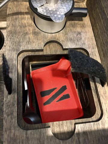 A szétszedett keret majd az egész doboz alá. Egy másik lapos dobozba ami össze illik a naggyal, úgy kell elképzelni mint ezek a moduláris egymásba rakható szerszámos dobozok. Ez a része még nincsen kész. Igazából ezek az apróságok zavartak, hogy táncot járnak a csomagtartóban. Mindent berakni a dobozába macerás nagyon. Így sokkal gyorsabb, egyszerűbb az egész szállítás.Ide még két zacsi kávé is befér.