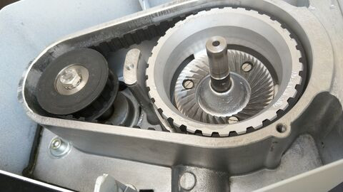 a motor tengelye egy hosszbordás ékszíjon keresztül hajtja a alsó késtartót (a felső fix), amelynek tengelyét fent és lent is egy persely rögzít. ennek a tengelynek a magasságát lehet változtatni manuálisan, egy finoman bordázott állítókeréken keresztül.egy pár kép ízelítőül: