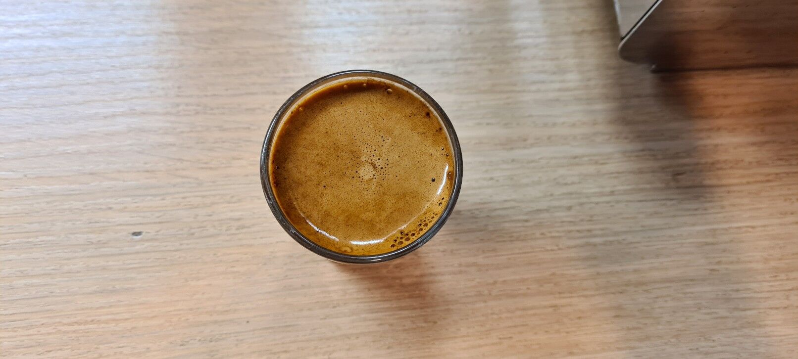 ezt csak a szimpla "tocsog a pogácsán a víz" témához. Ez rögtön csapolás utáni kép. Szerintem korrekt, LM szimpla 11 gramm kávéval. -
