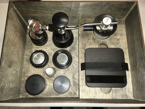 Összedobtam most egy hevenyészett szimplát, LM klón, 9g Mocambo Gran Bar, eredmény 18.5g 25mp ( csepptől mérve ) alatt szép egyenletes lefolyással. Meg a pogi kosárban és kiütve