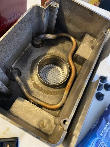 Kb. 2 hónap használat után most hétvégén szedtem szét a kazánt. Soha nem szoktam vizet kiengedni, tisztítani, stb...., viszont Aeropress filterpapírt használok. Így nézett ki: