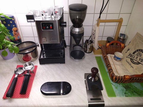 Úgy tanultam a Mantra-ban, hogy a kávé mennyiségétől függetlenül fontosabb, hogy szépen el lehessen nyomás nélkül egyengetni a kávét a szűrőben, szóval ez is állandó.