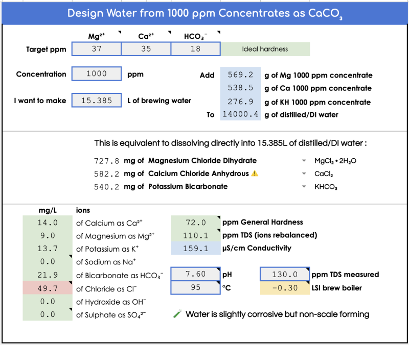 Presszóra a Light and Bright-ot kevertem, azt már nem a cseppekkel, ennek oka prózai: kifogytak volna az üvegcsék, az utánpótlás pedig nem érkezett meg. Viszont David Seng excel táblázata zseniális, mélyebb vízkémiai ismeretek nélkül is össze lehet rakni az oldatokat.