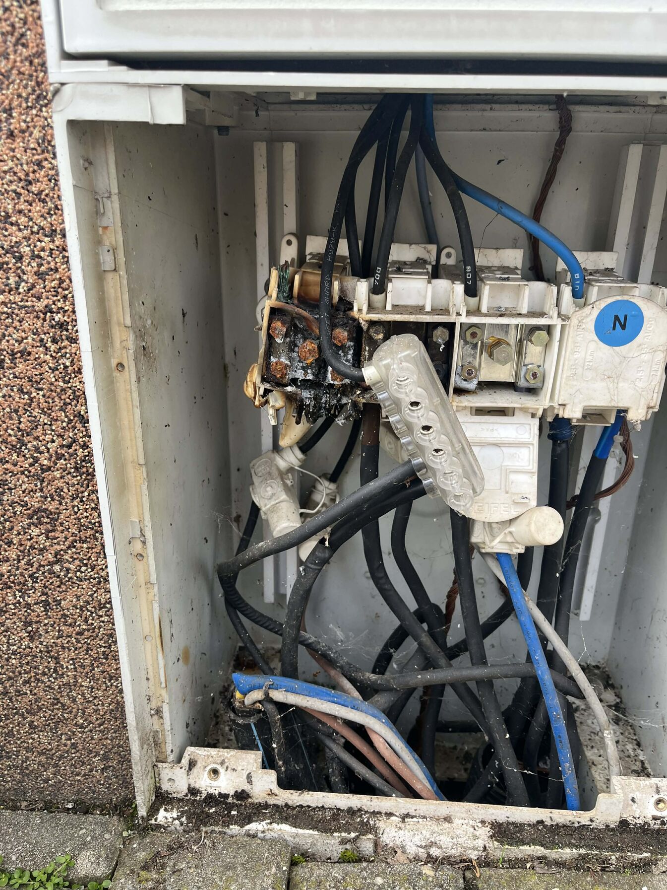 Ami neki nincs, mert 4 lakásonként van, az a földben lévő , térkővel körbeburkolt sínes doboz. 1 betáp, 4 ki. Az egész utca ilyen. Egyik szomszéd mondta most, pár éve máshol egy ilyen eldurrant a víztől. Na ez is közel jár hozzá. Csurom víz volt, mikor felemeltük a tetejét, ami elméletileg nem járhatna le.Ja a villanyszerelőm szerint 242 Volt jön be, ami nagyon sok.