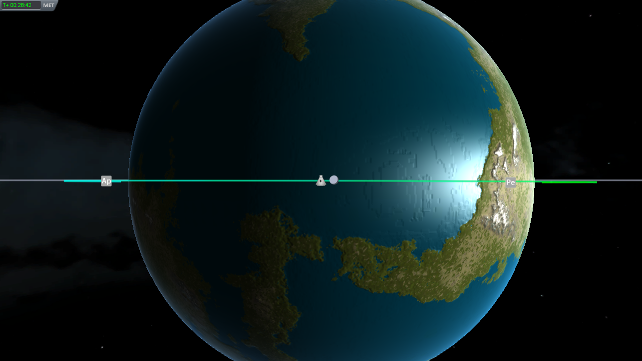 És amúgy tényleg döbbenet jól néz ki, bár érezhető a hatása a teljesítményre. Főleg bolygófelszín közelében a korábbi stabil 60-ról (ki tudja mennyi, úgy felejtettem a VSync-et...) 35-40 köré esett R9 390-nel.Tipp a holdraszálláshoz: a csillagok megfelelő együttállásánál indulj és sok üzemanyagot spórolhatsz == kisebb monstrumot kell építened. A gyakorlatban ez azt jelenti, hogy bolygónézetben a kamerát állítsd egyvonalba a Kerbin jobb szélével és a Munnal. Akkor kell indítani a rakétát, amikor a KSC éppen érinti ezt az egyenest (azaz ebben a nézetben a Kerbin legszélén helyezkedik el az űrállomás). 20-30 ezer métertől végig prograde-ben kell nyomni neki és magától elkapja a holdat.