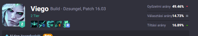 Viego winrate valóban érdekes módon 50% alatt van, de egyfelöl az én meccseim nem ezt mutatják, másfelöl a winrate csak egy dolog, de azt nem mutatja meg, hogy mennyire cringe egy adott hős ellen játszani.