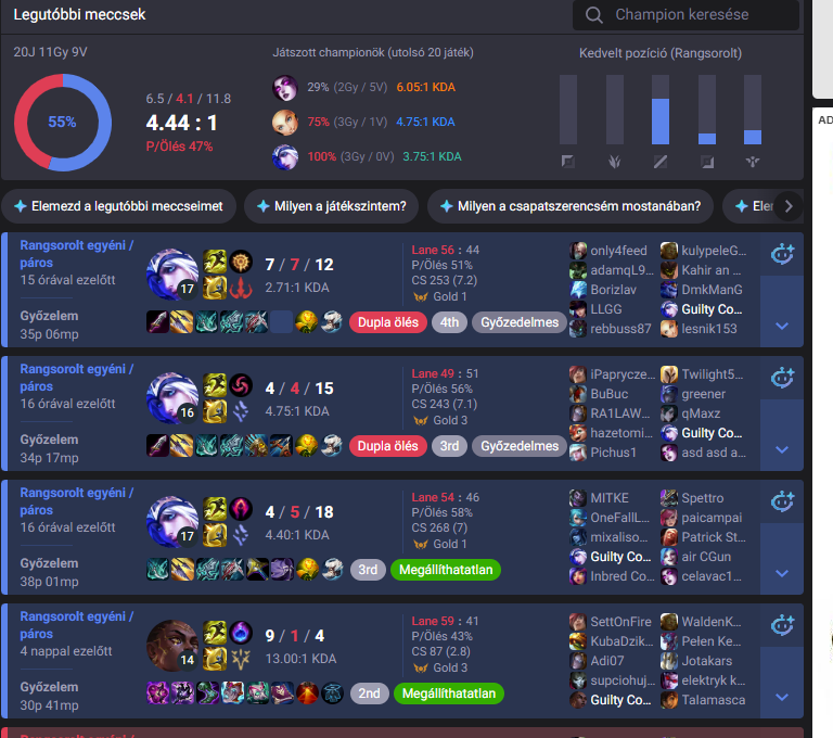 Itt az utolsó 100 ranked meccsed összesítése! Plat 3ból Gold3 estél is vissza...