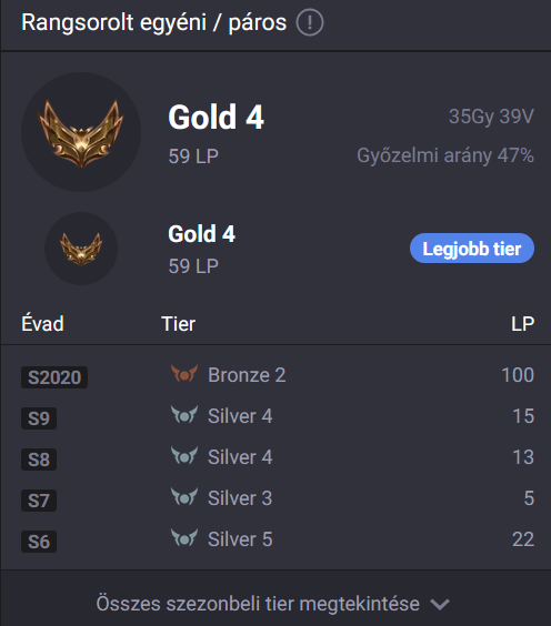 Plat 4be vagy, de Gold 4 tier. Ez mond el sokat, nem az, amit összehordasz!