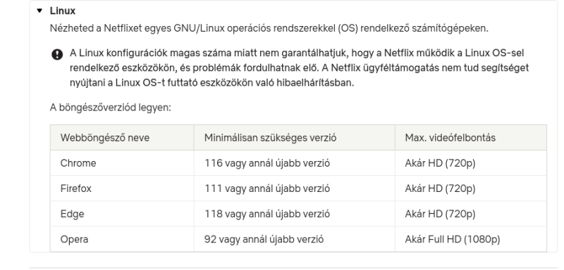 Lehet Netflix szolgáltatást igénybe venni LinuxMint rendszeren? A szolgáltató ezt mutatja böngészők terén. Ki melyiket használja? Nekem 300-as kábelnetem van. Van esély?