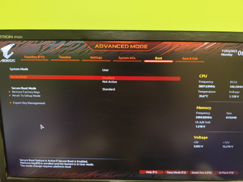 Pedig a „AHCI controller unavailable” hiba valószínűsíti, hogy a SATA mód nincs AHCI-ra állítva. Mivel a B550 chipset elég régóta támogatott, szinte kizárt, hogy találsz olyan distrot, ami nem támogatja. Ha nem SSD van benne, ez sem különösebben fontos.