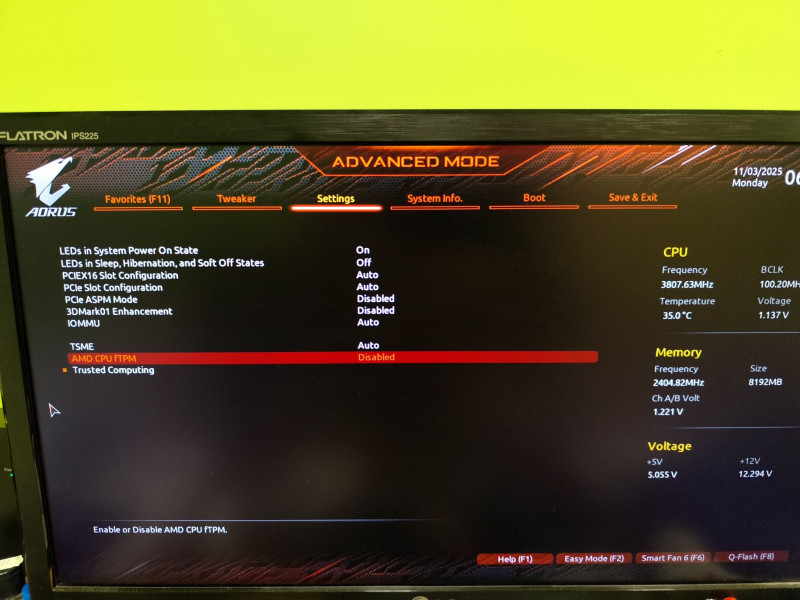 Uefi resetet tanácsodra megcsináltam.Majd letíltottam ismét a Fast bootot, secureboot, a CSM,és az AMD CPU FTMP lehetőségeket
