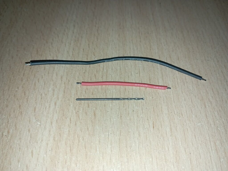 Szemléltetésképp melléraktam egy 0,8-as fúrószárat. És ezeken a vezetékeken kellene 6-7 ampernak száguldozni büntetlenül.