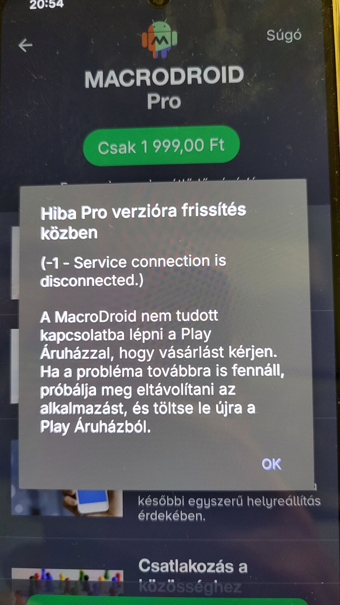 Szeretném egy telefonon frissíteni az appot PRO verzióra, de ezt az üzenetet kapom.