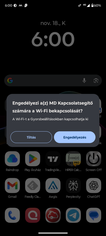 A Macrodroid a Kapcsolatsegítőn keresztül kapcsolná be a wifit, azonban mindig ez az üzenet jön fel, amit manuálisan kell jóváhagynom: