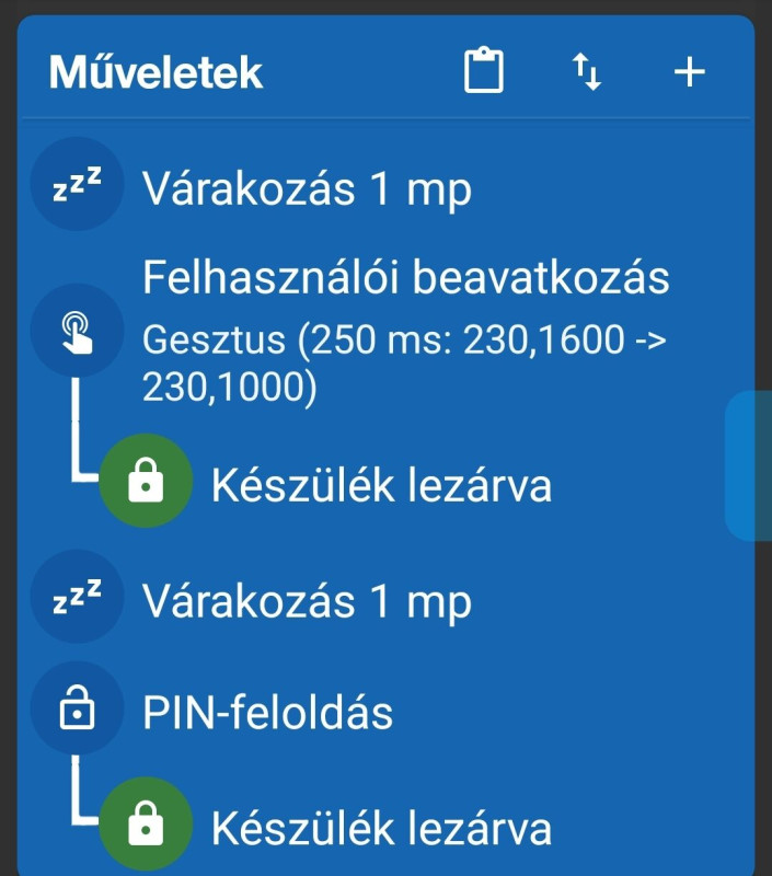 A probléma az, hogy ha be van állítva egy ilyen művelet és a kijelző ki van kapcsolva, de aktív a SmarLock, illetve az Intelligens/Tartós feloldás, akkor a művelet elvégzi a csúsztatást, ezzel feloldva a kijelzőt és az éppen aktiv oldalon a PIN kód sorrendjében össze-vissza nyomkodja a képernyőt, amitől nem várt dolgok történhetnek.