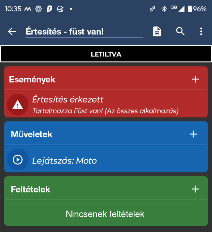 Mert, hiaba mutatja az ertesito sav, hogy aktiv a macrodroid az alkalmazni kivant makro megse mukodik csak ha manualisan elinditom/tesztelem valamelyik reszet