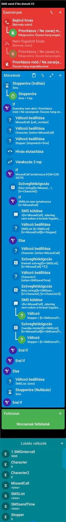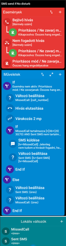 Mindaddig megy így ez az összefüzés, ameddig a "Ne zavarj mód" kikapcsolásra kerül, mert ebben az esetben kiürítésre kerül a Sent SMS változó.