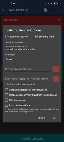 Nem kezeli jól a naptáreseményeket a Macrodroid. A naptár értesítését el lehet kapni, de nem tartalmaz mindent. Sok változót létre kell hozni, mire összerakódik az SMS küldéséhez szükséges adat.