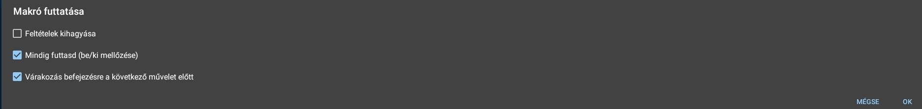 Hatása: Az összes Eseményre hatással van, a makró működése az itt elhelyezett feltétel(ek) teljesülésétől függ.Ma már én sem használom gyakran, de mint írtam korábban csak itt lehetett feltételt megadni. Viszont egyszerűsiti a feltétel megadását, ha minden eseményhez ugyanaz kell.