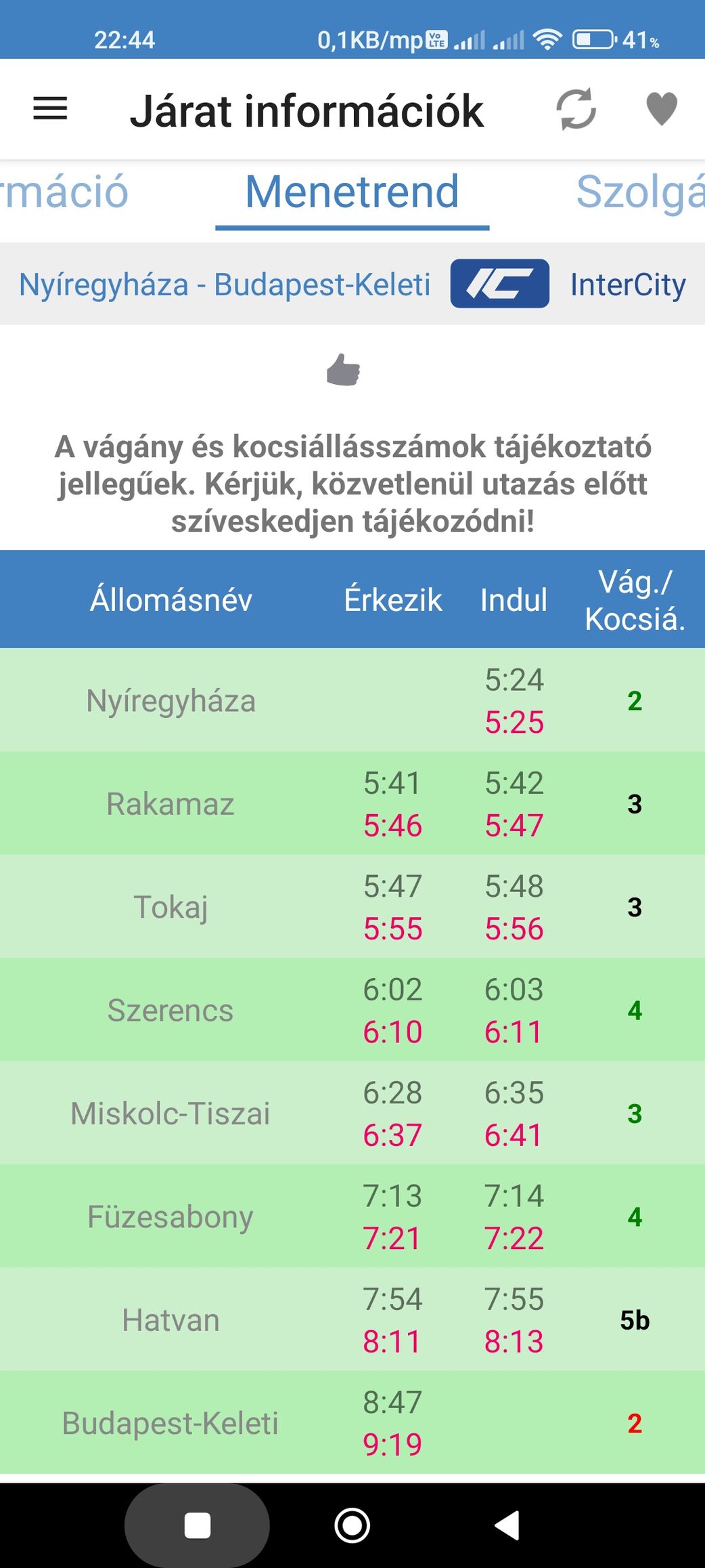 Valaki megnézné légyszi, ugyaz az a járat, amit fent írtam.Engem csak a végállomási érkezés érdekel most.