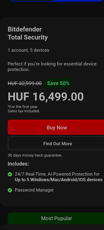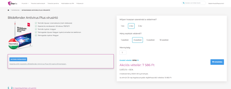https://www.virusirto-szoftverek.hu/otthoni-virusirto/BitDefender/Bitdefender-Total-Security-5-eszkoz-10Kicsit gyanús hogy ilyen olcsó.