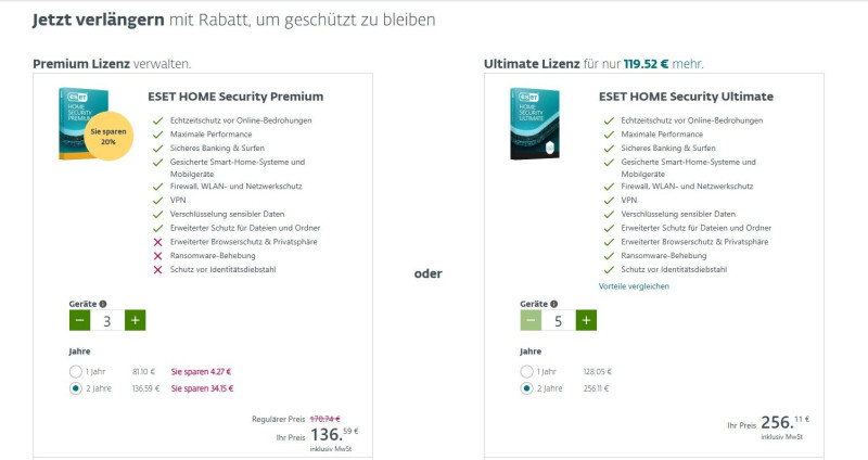 Az "utcáról beeső" ügyfeleknek még az Ultimate Security is olcsóbb, mint amennyibe számomra a "Premium" változat kerülne...