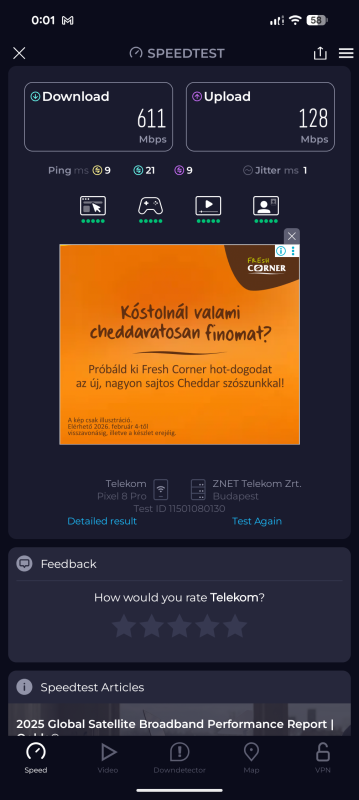 Régebben linkeltem egy teszt videot, ahol 750/420 Mbps jött ki a srácnak, így nem rossz hogy 2-3 hét elteltével én is a közelében vagyok.
