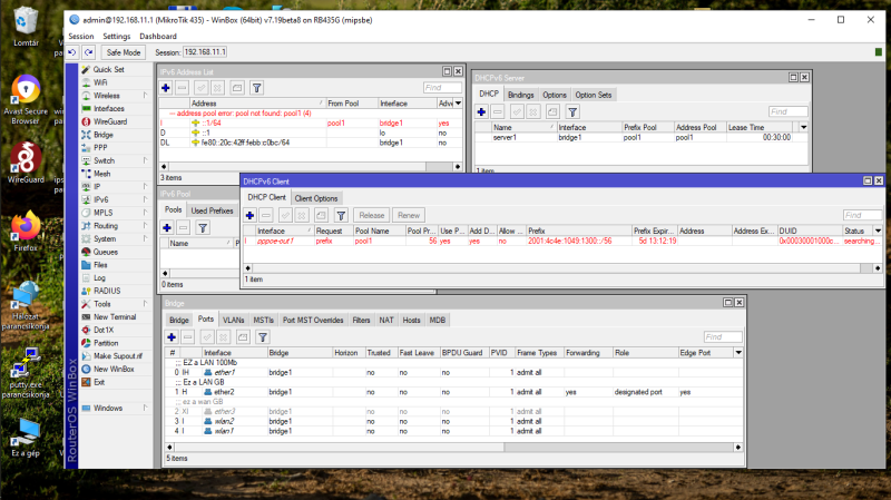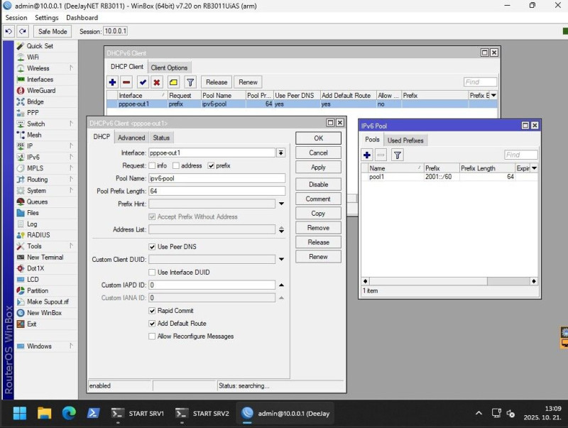 ipv6 pool üres!, ipv6 address: hiányoja a pool1