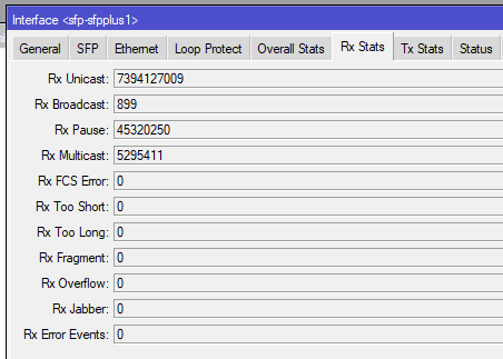 Visszaolvasva az eredeti kérdést, abban az is szerepel, hogy ha a GÉPED felé cseréled az optikát rézre, akkor megjavul az egész. Akkor a probléma még is az optikával lehet. Ott (sfpplus3) milyen errorok/droppok/pauseok vannak? -