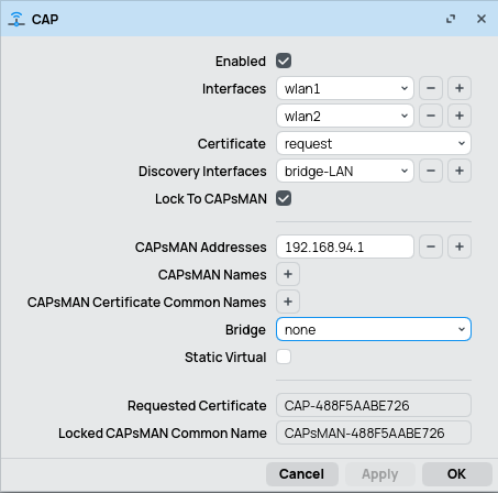 klasszik wireless esetében a CAP konfig (kliens eszköznél) itt ez a bridge mit csinál? ha nem rész az adott wifi interfész valami bridge-nek, akkor beleteszi?
