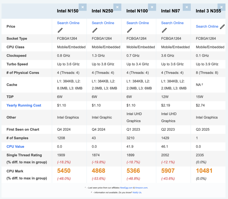 Általános otthoni felhasználásra (böngészés, office, Youtube 4K, stb..) keresek mini pc-t egy ismerősömnek. Találtam az Asus kínálatában több gépet is N-es procikkal. Utánna néztem a prociknak, de nem tiszta teljesen a teljesítményük. Jelenleg egy i5 2400-as gépet kellene leváltania a mini PC-nek. Amit most kinéztem gép az egy N150-el szerelt verzió: ASUS NUC 14 Essential NUC14MNK150 De létezik ez N97, N100, N250, és N355-el is. Nyilván az N355-ös a legdrágább közülük. A gépbe 16Gb memóriát és 1Tb m.2 ssd-t szeretnék tenni. A kérdés a következő lenne, elég a N150, vagy kell az "erősebb" a fent felsorolt dolgokhoz? Igazából nem is igazodok ki melyik az erősebb, ill. a jobb, mert az összehasonlítás alapján az N97 elvileg erősebb mint a N150?