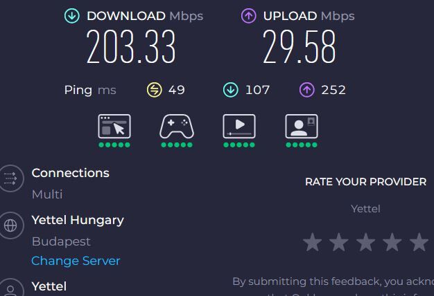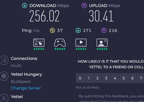 Ennél jobb térerőt nem tudtam találni nálam, fokozatosan lassul hétről hétre a sebesség, főleg hétvégén.