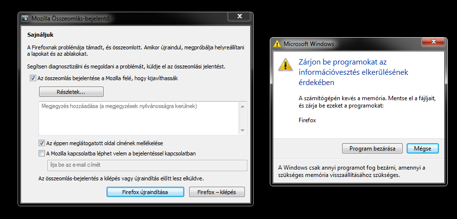 Ha valaki nem talalja a hibat, irja be a googliba: firefox not respondingThx