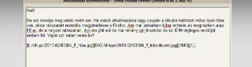 Na ezt mondja meg valaki miért van. Ha másik alkalmazásra vagy csupán a tálcára kattintok mikor ilyen hiba van, akkor visszavált normális megjelenítésre a Firefox. Am már próbáltam fullra letörölni és megnéztem alap FF-el, de a helyzet változatlan. Am ma jött elő és ma néhány win frissítést és az IE10 végleges verzióját raktam fel. Vajon ezt kavart volna be?